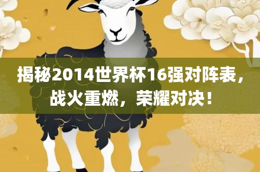 摘要:2014世界杯战火重燃,16强荣耀对决的对阵表揭晓。各支球队经过激烈角逐,最终晋级16强,展开荣誉之战。球迷们翘首以待,期待这场足球盛事的精彩对决和激情瞬间。